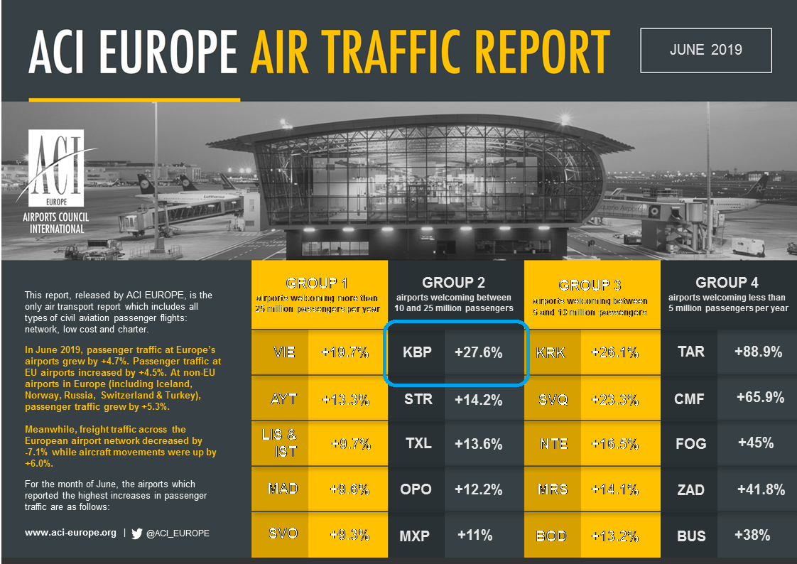 ACI Europe ежемесячно составляет рейтинг аэропортов по уровню пассажиропотока, анализируя данные более 230 европейских аэропортов.