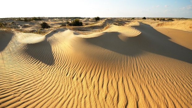 21. Одна из крупнейших пустынь Европы находится именно в Украине - Олешковская. Олешковские пески состоят из бескрайних барханов (местные жители называют их «сугробами») высотой около 5 м с негустой растительностью. Находятся эти пески близ города Алешки, в 30 км к востоку от г.. Херсон.